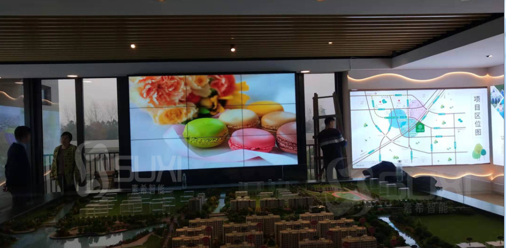 在嘉興世合理想大地,一切都是生態的,水是清澈的,空氣是舒爽的,土壤是干凈的,食物是安全的。有鄰里相融的低密度環境,有醫院,有學校,孩子可以從幼兒園一直讀到高中畢業,小鎮還配備了21個不同題材的文化會所,園藝社、烹飪社、仁愛社……你會認識志趣相投的朋友,感受不一樣的世界。世合人用努力和智慧,打造與地球相融共生、友善干凈的環境,讓居住在這里和使用這塊土地的人,都能夠舒適、優雅地生活著。接下來素希小編給大家介紹一下素希液晶拼接屏應用在世合理想大地樓盤的現場案例。